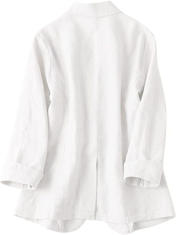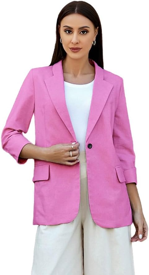 Womens Linen Blazer Notch Lapel One Button Suit Coat Jackets