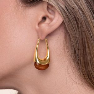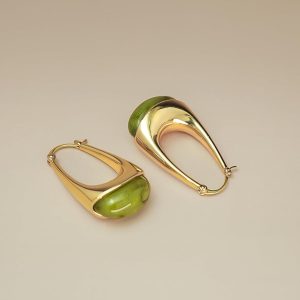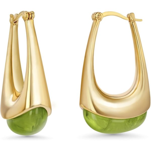 9 reviews for Women’s Long Oval Chunky Pendant Gold Hoop with Resin Gemstone Earrings, Exaggerated Irregular Fashion Gift, Round Vintage Thick Round Nickel Free Earrings.