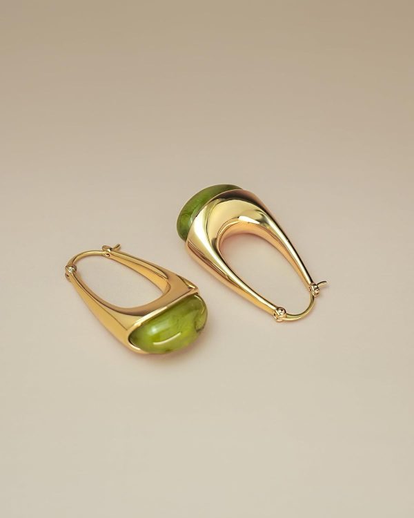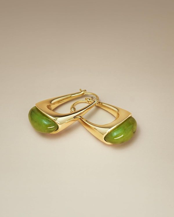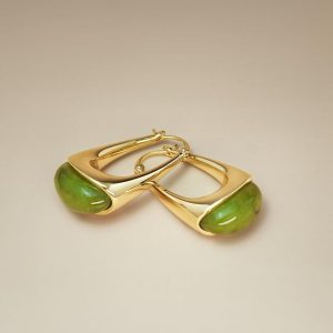 These are a beautiful color, but a little bit heavy. I decided they were too heavy for my ears and gave them to a daughter with stronger ear lobes (ha ha). But seriously, they are quite beautiful. The gold is shiny, they feel good and smooth, and the green color is like green amber.