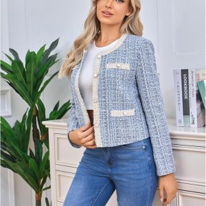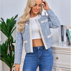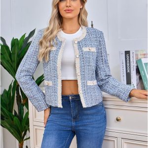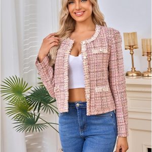 Be the first to review “Women’s Tweed Blazers Cropped Long Sleeve Crewneck Open Front Lace Trim Lightweight Plaid Work Business Jackets” Cancel reply